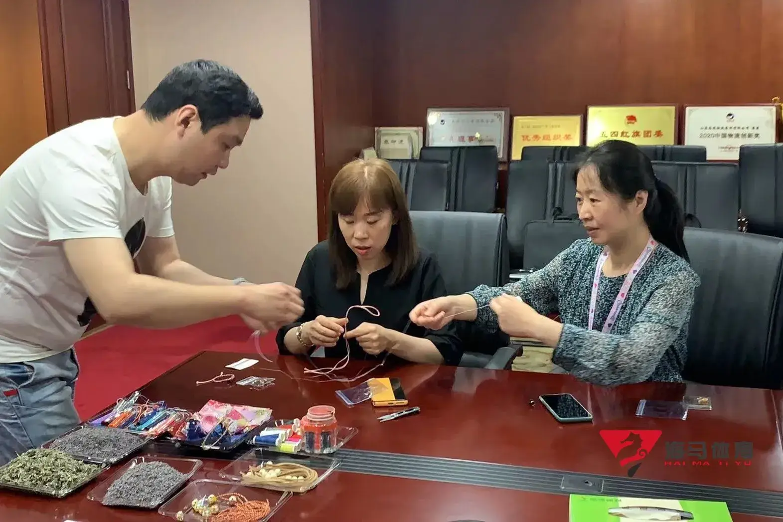 制作前,摩登7的手工老师首先介绍了端午的习俗以及端午节制作香囊与五彩绳的来历,让大家在活动前了解端午的民俗文化,手工老师将精心准备的有着美好寓意的五色彩绳、色彩绚丽的香包袋以及清香的艾草薰衣草,送到职员手中,携手制作香包和五彩绳。